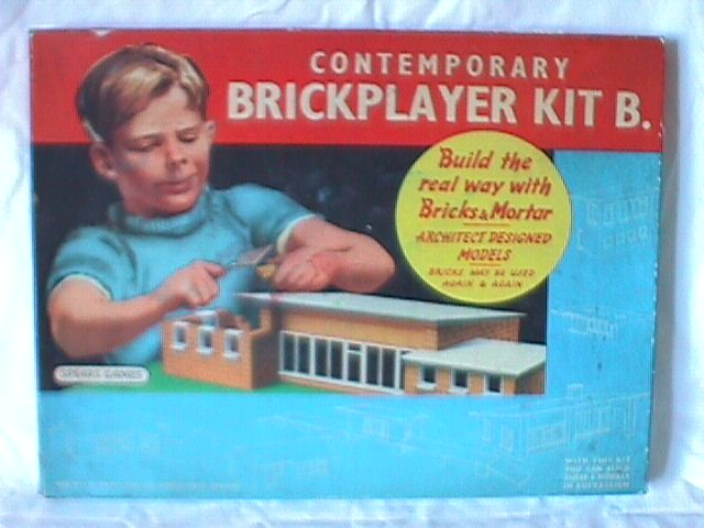 Contemporary Brickplayer was produced in the 1950's to reproduce more modern styles and the sets included foiled card to simulate cladding and roof coverings and plastic blister roof lights.