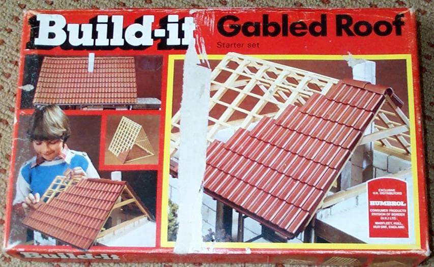 As far as I can tell, this is a brick and mortar set. I only have in my collection a roof building set (see picture below) which comprises plastic rafters, purlins and roof tiles, but which is clearly part of a larger range of sets. I would be delighted to hear from someone who remembers using these kits and can supply more concrete information!