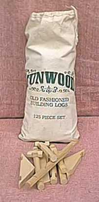 Circular cross-section logs with cut outs to allow interlocking at corners.