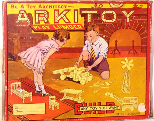 Blocks with holes which connect together by means of dowels. Not specifically an architectural toy, but can be used as such.
