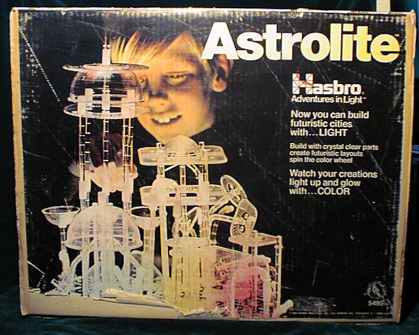 Large variety of clear plastic parts which push-fit together. Built up from a perforated base which has light unit underneath with rotating coloured filter. The light serves to illuminate the structure rather like a fiber optic lamp (but a lot less naff!)