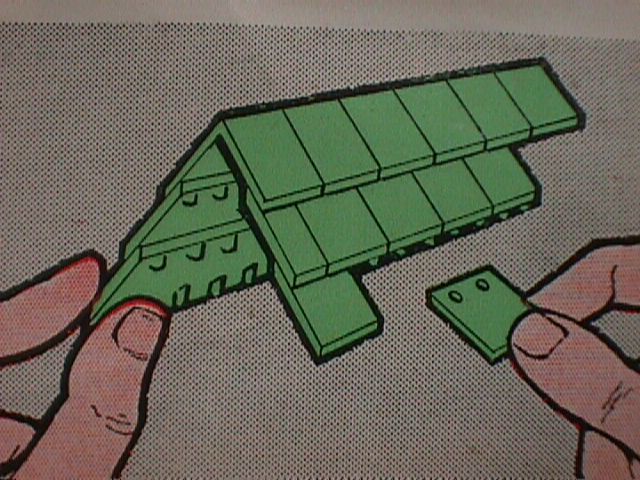 Bricks come in red or white in various lengths but always one stud wide. Special wall parts include anged gable bricks, curved bricks and arches. Flat wall / floor plates in a limited range of sizes came in white only (as far as I am aware). Various designs of windows and doors including opening garage door. Later sets also had larger special window, door and wall sections in yellow or blue.