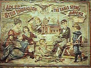 'Stone' stacking blocks in red, cream and blue which differ from the usual Anchor copies in that